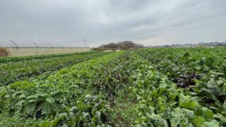 冬はホウレン草や水菜、からし菜をよく見かけます。ダイコンやカブもこの季節、とても大きくなっています。